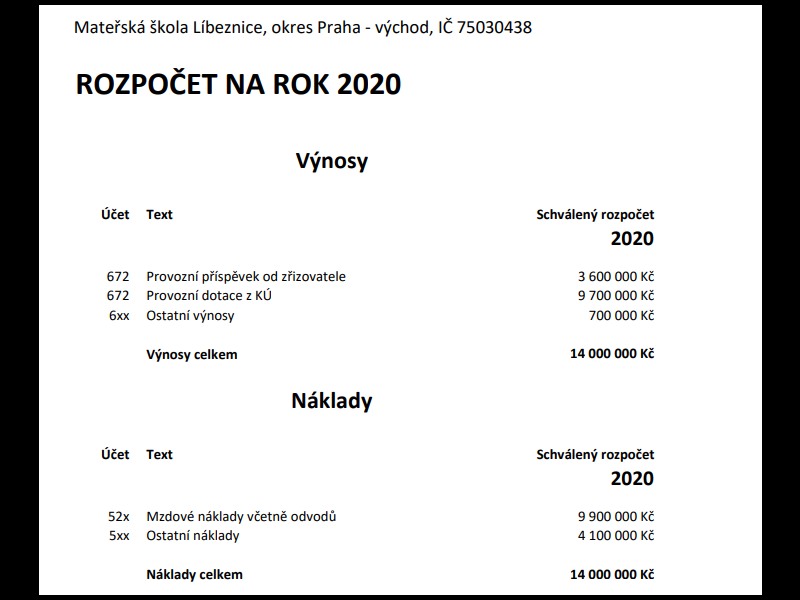 Rozpočet mateřské školy